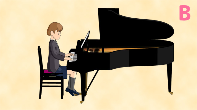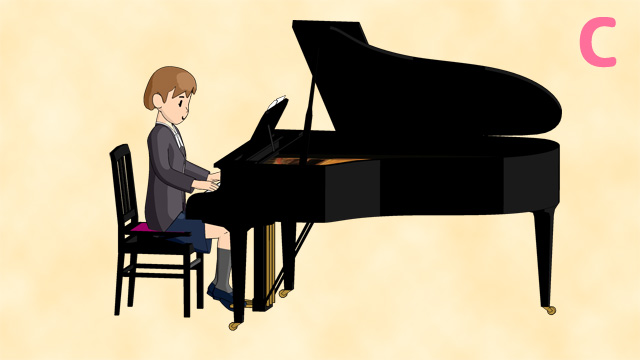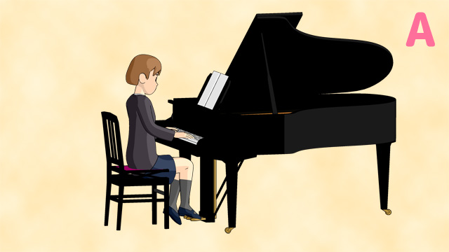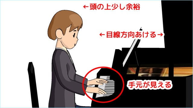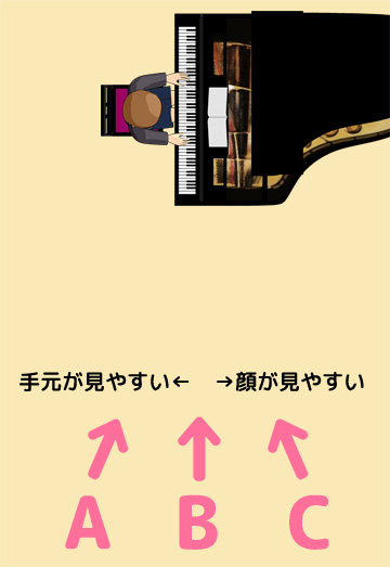 Aの位置は顔は見えにくいが、演奏自体(鍵盤、ペダル)はよく見える。